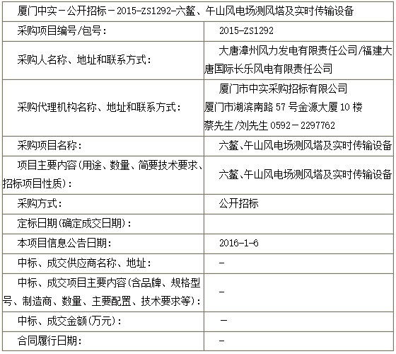 六鳌、午山风电场测风塔及实时传输设备中标公示