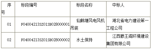 中电投江西仙鹅塘风电风机吊装、水土保持通过招标评审,结果公示如下: