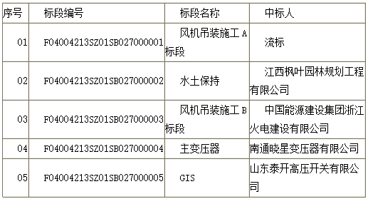 中电投江西寻乌基隆嶂风电风机吊装、水土保持、主变和GIS通过招标评审,结果公示如下:
