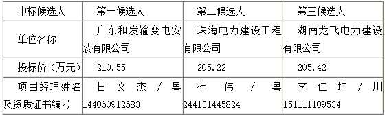 湛江110千伏华海风电场接入系统工程施工[项目编号:JG2015-8936]项目的招标评标工作已经结束,评标委员会经评审推荐了本项目中标候选人。 现将中标候选人情况予以公示(公示时间从2016-01-28 15:38 至 2016-01-31 23:59止),具体如下:
