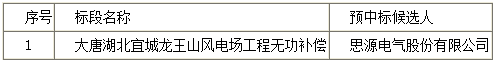 大唐湖北宜城龙王山风电场工程无功补偿招标中标公示