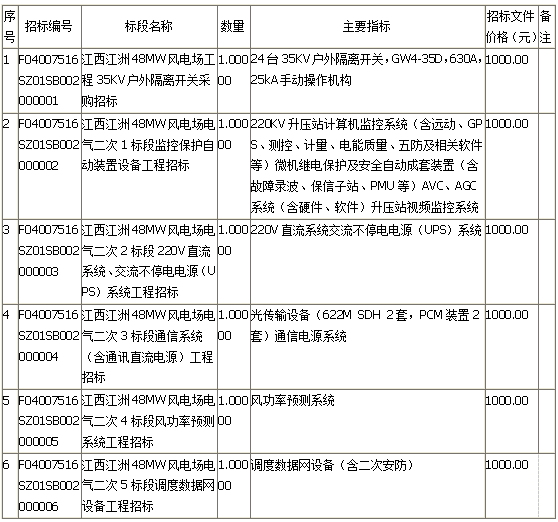 中国电能成套设备有限公司受招标人委托,对吉电股份江西江洲48MW风电场工程电气一次、二次设备招标进行公开招标。