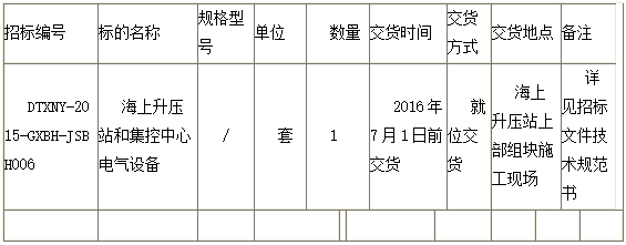 1.2 标的名称:海上升压站和集控中心电气设备
