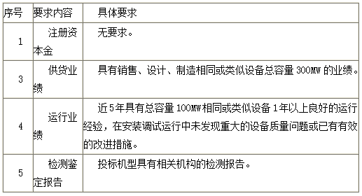 2.1.3设计制造过与投标产品相同结构、相同型式、同等或以上技术规格的产品。在与规范相同或和较规范更严格的条件下,该产品的投运数量或供货数量及其成功运行时间满足招标人的要求。如同一标段内存在不同类别的设备,则申请人须分别满足标段内各类别设备的资格要求。