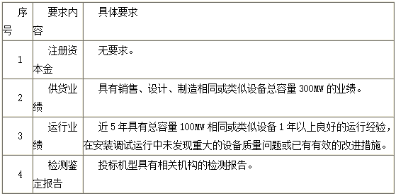 2.1.3 设计制造过与投标产品相同结构、相同型式、同等或以上技术规格的产品。在与规范相同或和较规范更严格的条件下,该产品的投运数量或供货数量及其成功运行时间满足招标人的要求。如同一标段内存在不同类别的设备,则申请人须分别满足标段内各类别设备的资格要求。