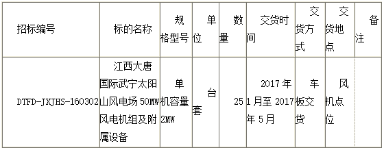1.2 标的名称:风力发电机组及其附属设备