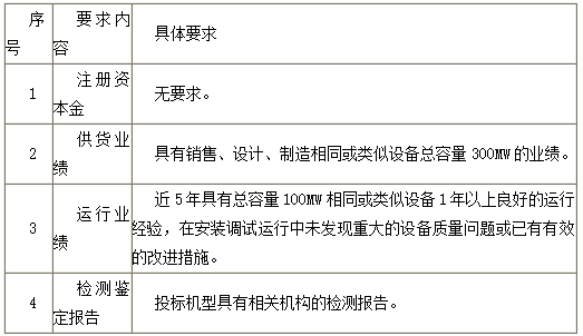 2.1.3 设计制造过与投标产品相同结构、相同型式、同等或以上技术规格的产品。在与规范相同或和较规范更严格的条件下,该产品的投运数量或供货数量及其成功运行时间满足招标人的要求。如同一标段内存在不同类别的设备,则申请人须分别满足标段内各类别设备的资格要求。
