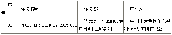 中电投滨海北区H2#400MW海上风电工程勘测招标结果公告