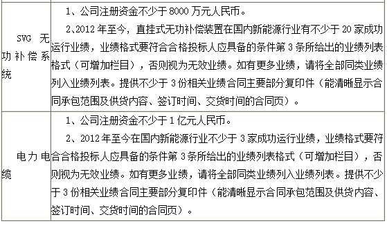 3、投标产品的生产企业具有设计、制造与招标设备相同/相近设备的能力,提供的业绩必须是真实的,如发现虚假业绩,将取消其投标资格,且业绩格式要符合下表的要求(可增加栏目),否则视为无效业绩。
