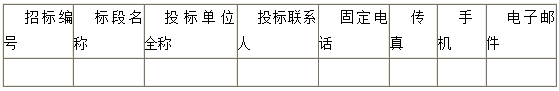 说明:本表中填报的投标人名称须全称且与营业执照上的名称一致。购买招标文件单位、购买招标文件回执确认单”中列明的单位名称必须与实际参与投标的单位名称一致,并且具有独立法人资格。