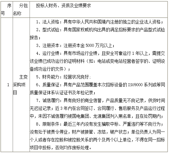 1.1 国电诚信招标有限公司(以下亦称“招标代理机构”),受 龙源汇泰(滨州)风力发电有限公司(以下简称“招标人”)的委托,在采用国内 公开招标方式( 一步制、 网上开标)邀请符合招标文件要求的标的物制造企业(以下简称“投标人”),就本次招标项目的供货和服务提交密封的有竞争性的投标文件。