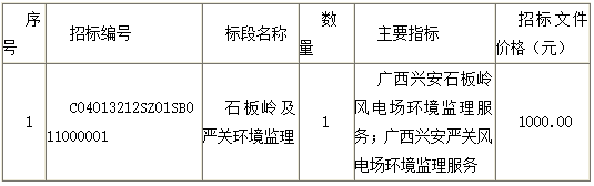 中国电能成套设备有限公司受招标人委托,对广西兴安兴安县石板岭风电场、严关一期风电场工程环境监理服务进行公开招标。