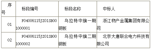 中国电力投资集团公司物资装备分公司2015年第一批风电塔筒集中招标(乌中旗钢板)招标结果公示