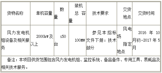 1. 国信招标集团股份有限公司(以下简称“招标机构”)受浩泰新能源装备有限公司(以下简称“招标人”)委托,就南阳市南召县皇后风电场工程风力发电机组及附属设备采购项目(招标编号: )进行公开招标采购,现邀请具有独立法人资格且招标内容在其经营范围内的合格投标人参加本次采购招标。