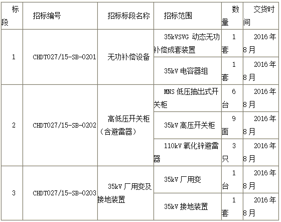 3)35kV厂用变及接地装置标段:投标人的注册资金应不小于3000万人民币,最近3年(2013年-2015年)内应具有同类设备业绩30套及以上。