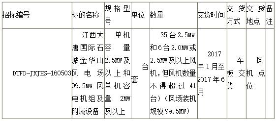 1.2 标的名称:风力发电机组及其附属设备