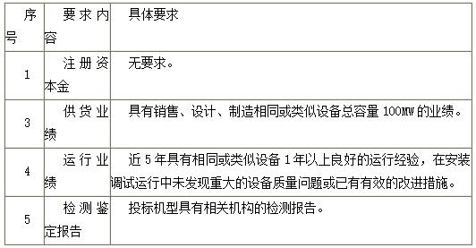 2.1.3 设计制造过与投标产品相同结构、相同型式、同等或以上技术规格的产品。在与规范相同或和较规范更严格的条件下,该产品的投运数量或供货数量及其成功运行时间满足招标人的要求。如同一标段内存在不同类别的设备,则申请人须分别满足标段内各类别设备的资格要求。