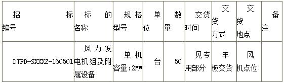 1.2 标的名称:风力发电机组及其附属设备
