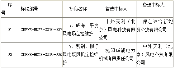 华润新能源华东分公司风电场升压站及输电线路预防性试验、定期维护、巡视以及风机定检维护招标(第二部分)通过招标评审,结果公示如下: