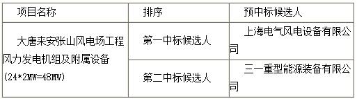清洁能源部-大唐新能源来安张山风电场工程风力发电机组及附属设备中标公示
