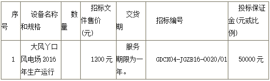 项目名称: 国电电力云南新能源开发有限公司大风丫口及马英山风电场2016 年生产运行服务【二次挂网】(以下简称“项目”)
