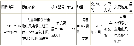 1.2 标的名称:2.5MW及以上风力发电机组及其附属设备