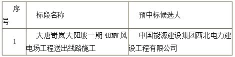 大唐岢岚大阳坡一期48MW风电场工程送出线路施工招标中标公示