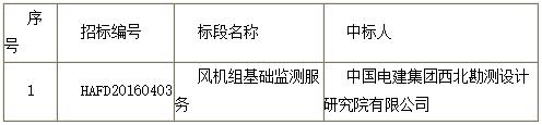 中电投徐闻和安风电场风机基础监测服务招标通过招标评审,结果如下: