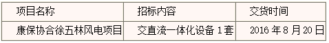 1. 国信招标集团股份有限公司(以下简称“招标机构”)受浩泰新能源装备有限公司(以下简称“招标人”)委托,就康保协合徐五林风电场交直流一体化设备采购项目(项目编号:GXTC-1614086)所需设备及相关服务进行公开招标采购,现邀请具有独立法人资格的合格投标人参加本次招标。