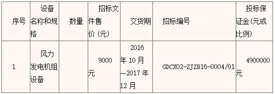 1.5招标范围:单机容量4.0MW(IEC Ⅰc类),总容量为216MW成套的风力发电机组及附属设备,同时包括所有必要的材料,吊装工具、备品备件、专用工具、消耗品以及设计、技术资料和技术服务等。具体内容详见技术部分及招标文件相关内容规定。