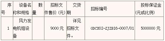 1.5招标范围: 单机容量2.5MW,总容量为200MW(允许偏差不大于1台风电机组的单机容量)成套的风力发电机组及附属设备(含机组升压设备、塔架),同时包括所有必要的材料、吊装工具、备品备件、专用工具、消耗品以及设计、技术资料和技术服务等。具体内容详见招标文件技术部分的有关规定。