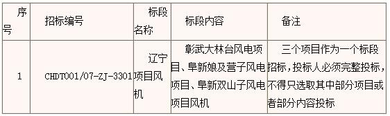 华电招标有限公司受招标人委托,作为招标代理机构,对辽宁彰武大林台、阜新娘及营子、阜新双山子风电项目风电机组进行国内公开招标,现公告如下: