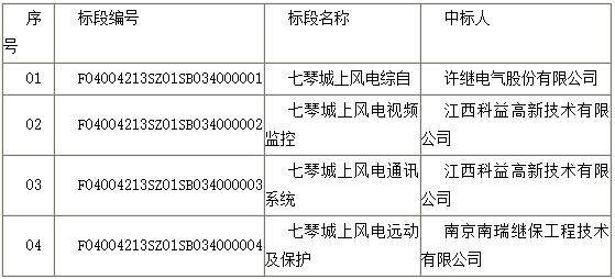 国家电投江西七琴城上风电电气二次设备通过招标评审,结果如下: