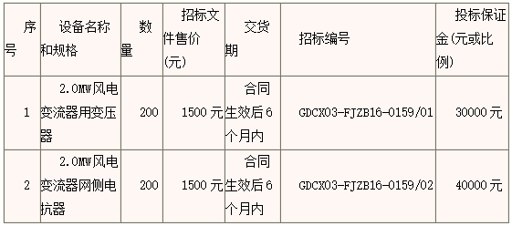 项目名称: 2016年度风电变流器生产用料框架采购(2.0MW风电变流器用变压器、2.0MW风电变流器网侧电抗器)【二次挂网】(以下简称“项目”)