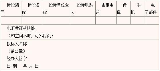 说明:本表中填报的投标人名称须全称且与营业执照上的名称一致。购买招标文件单位、购买招标文件回执确认单”中列明的单位名称必须与实际参与投标的单位名称一致,并且具有独立法人资格。