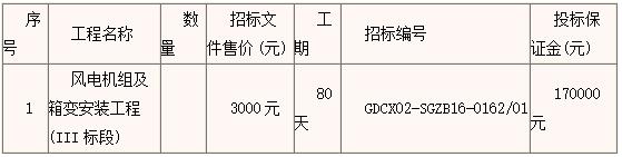 国电诚信招标有限公司受国电天唯康保风能有限公司的委托,对国电康保五福堂风电场300MW项目风电机组及箱变安装工程(III标段)进行国内公开招标。