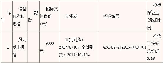 1.5招标范围: 单机容量2.0MW及以上,总容量为46.2 MW(允许偏差不大于1台风电机组的单机容量)成套的风力发电机组及附属设备,同时也包括所有必要的材料、备品备件、专用工具、消耗品以及设计、技术资料和技术服务等。具体内容详见招标文件技术部分的有关规定。