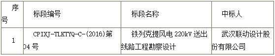 中电投兵团第九师铁列克提风电220kV送出线路工程(阿拉山口-莫合泉220kV变电站)勘察设计招标结果公告通过招标评审,结果如下: