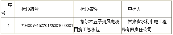 国家电投西藏分公司广东明阳格尔木五子河49.5MW风电项目工程施工总承包招标结果公告