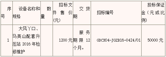 项目名称: 国电电力云南新能源开发有限公司大风丫口及马英山风电场及配套升压站2016年检修维护(以下简称“项目”)