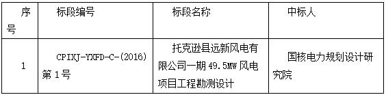 托克逊县远新风电有限公司一期49.5MW风电项目工程勘测设计招标结果公告