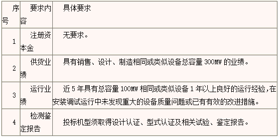 3.1 合格投标人及其投标产品须满足如下通用资格要求: 3.1.1 投标人须为中华人民共和国境内依法注册的企业法人或其它组织。 3.1.2 投标人须具备相应设备的制造能力,并在人员、设备、资金等方面具有保障如期交货等承担招标项目的能力,以及产品、元器件、组件材料和配套件的检测能力。除特别注明外,这些资格、资质、业绩均系投标人本企业所拥有的权利权益。 3.1.3 设计制造过与投标产品相同结构、相同型式、同等或以上技术规格的产品。在与规范相同或和较规范更严格的条件下,该产品的投运数量或供货数量及其成功运行时间满足招标人的要求。如同一标段内存在不同类别的设备,则申请人须分别满足标段内各类别设备的资格要求。 3.1.4 取得国际权威机构或者国家授权、许可的产品检验检测机构出具的产品有效试验、鉴定报告,且报告结论数据满足本次招标的要求。 3.1.5 具有良好的银行资信和商业信誉,没有处于被责令停业或破产状态,且资产未被重组、接管和冻结,良好的近三年的财务报告及报表。 3.1.6 近三年内,在供货合同履行、售后服务及产品运行过程中,未出现中标后不履约、履约过程中严重违反合同规定及供货产品出现重大质量问题。 3.1.7 在过去承接中国大唐集团公司系统的项目中,没有出现投标单位负主要责任的技术、质量、商务等纠纷。 3.1.8 没有被暂停或取消投标资格。 3.1.9 本次招标不接受联合体投标。 3.1.10 本次招标不接受代理商投标。 3.1.11 各潜在投标人均可购买本次招标的部分或全部标段招标文件,参加投标。 3.1.12 与招标人存在利害关系可能影响招标公正性的法人、其他组织,不得参加投标;单位负责人为同一人或者存在控股、管理关系的不同单位,不得参加同一标段的招标或者未划分标段的同一招标项目的投标。 3.2 合格投标人及其投标产品须满足相应招标设备的专用资质业绩要求,各类设备专用资质业绩要求事项及其数据、状态见附件“专用资质业绩要求”。