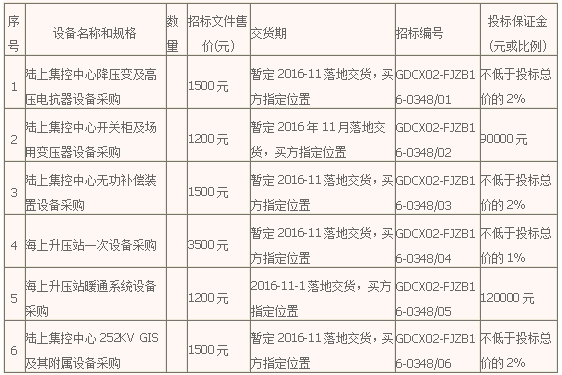 招标编号: GDCX02-FJZB16-0348( 01- 06)