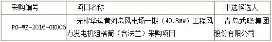 无棣华运黄河岛风电场一期(49.8MW)工程风力发电机组榙筒(含法兰)采购项目由北京国网富达科技发展有限责任公司代理,该项目采用公开招标采购方式,现评审工作已结束。