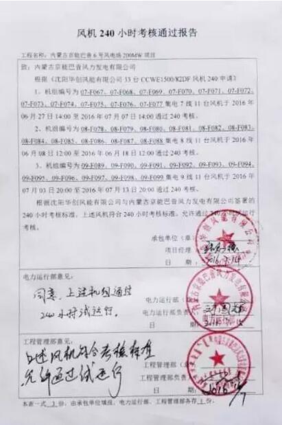 7月15日6:00,公司为内蒙古京能巴音风力发电有限公司供货的33台CCWE1500/82DF双馈风电机组全部通过240考核。截止目前,公司今年已有八个风场顺利完成240考核。