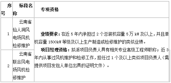 云南鸿立招标代理有限公司受招标人中国电力投资集团公司云南分公司委托,对云南中云电新能源有限公司投资建设的云南省仙人洞、联合风电场风机检修维护[招标编号:HLZB-2016-07-27]进行二次公开招标,请符合资格要求的潜在投标人参加投标。