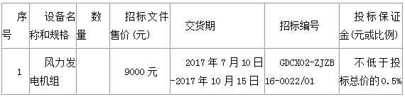 1.5招标范围: 总容量为49.5MW,采购单机容量2.0MW及以上(允许偏差不大于1台风电机组的单机容量)成套的风力发电机组及附属设备,同时也包括所有必要的材料、备品备件、专用工具、消耗品以及设计、技术资料和技术服务等。具体内容详见招标文件技术部分的有关规定。