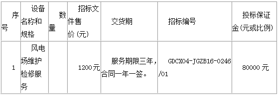 1.4 招标范围为本次招标项目的服务:本次招标的范围为宝山风电场设备、系统、设施的检修维护服务。包括:风力发电机组及其附属设备、箱变、35kV集电线路、发变电设备、风机监控系统、升压站监控系统、通讯及信息传输设备、保护装置、直流系统等设备及系统、电源箱及生活水系统、消防系统、升压站及其附属设备设施的维修、日常维护及卫生清扫、消缺等工作等。具体内容详见招标文件第二卷的有关规定。按照本招标范围及内容本次招标要求总报价为(一年)。