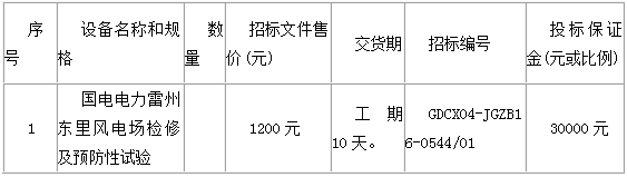 招 标 人: 国电电力广东新能源开发有限公司雷州分公司
