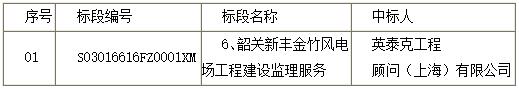 华润电力2016年度第9批次集中招标(新能源-韶关新丰金竹风电场工程建设监理)招标结果公告